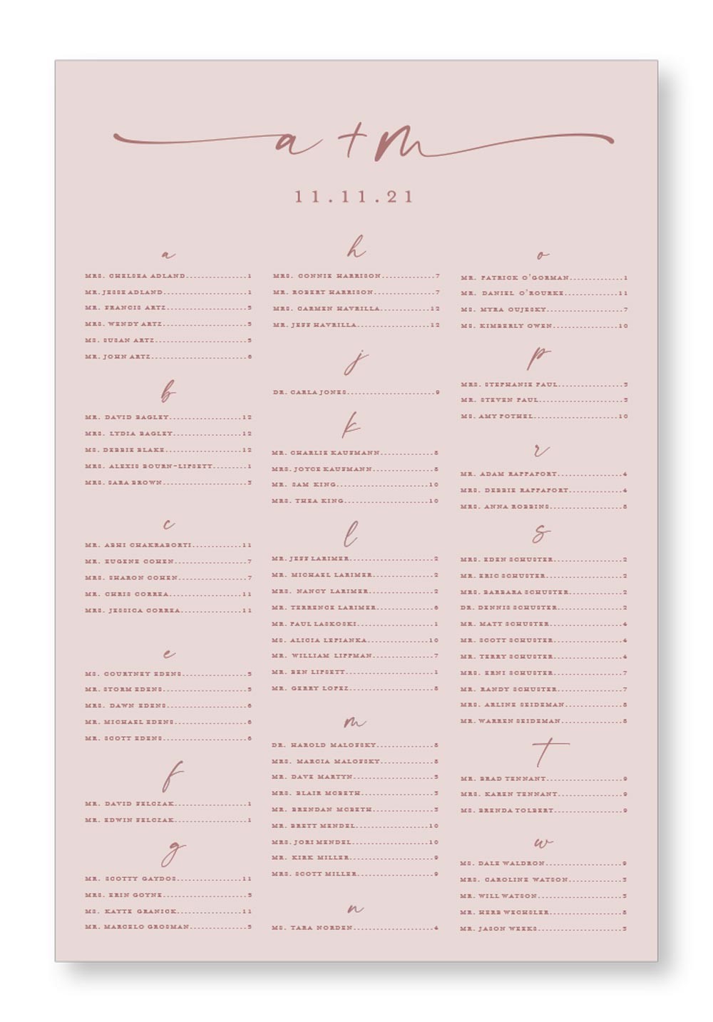 Seating Charts are a great way to tell your guests at which table you'd like them to sit. Our Seating Charts are designed to match each collection and can be personalized to match your wedding!