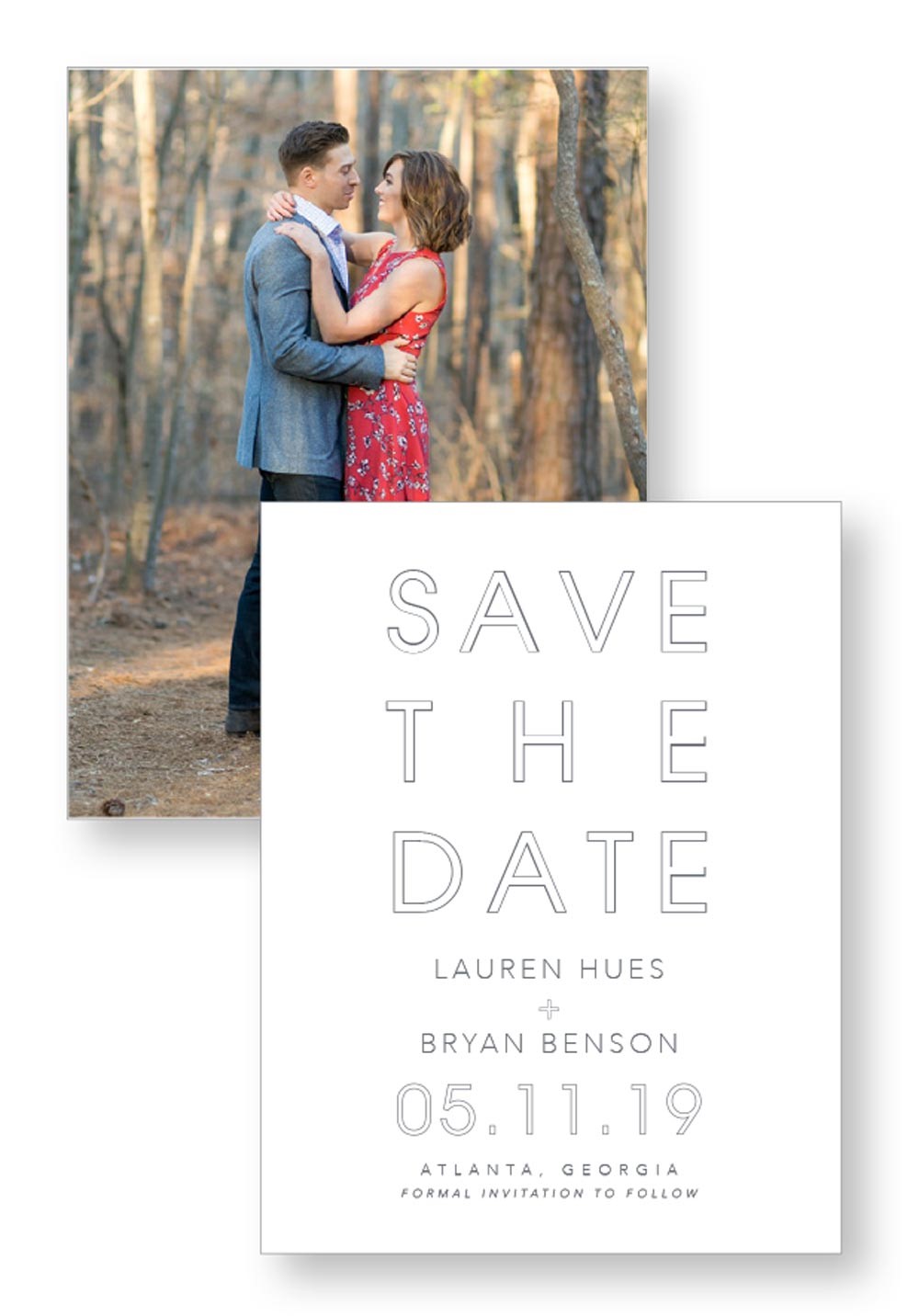Save the Dates are the first cards you send out to your guests to announce your wedding date. They can be simple and traditional or you can add pops of color and your photo to set the tone of your wedding. Our Save the Dates are a flat 4.25" x 5.5" card on your choice of paper.