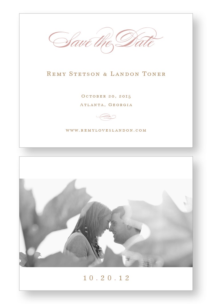Save the Dates are the first cards you send out to your guests to announce your wedding date. They can be simple and traditional or you can add pops of color and your photo to set the tone of your wedding. Our Save the Dates are a flat 4.25" x 5.5" card on your choice of paper.