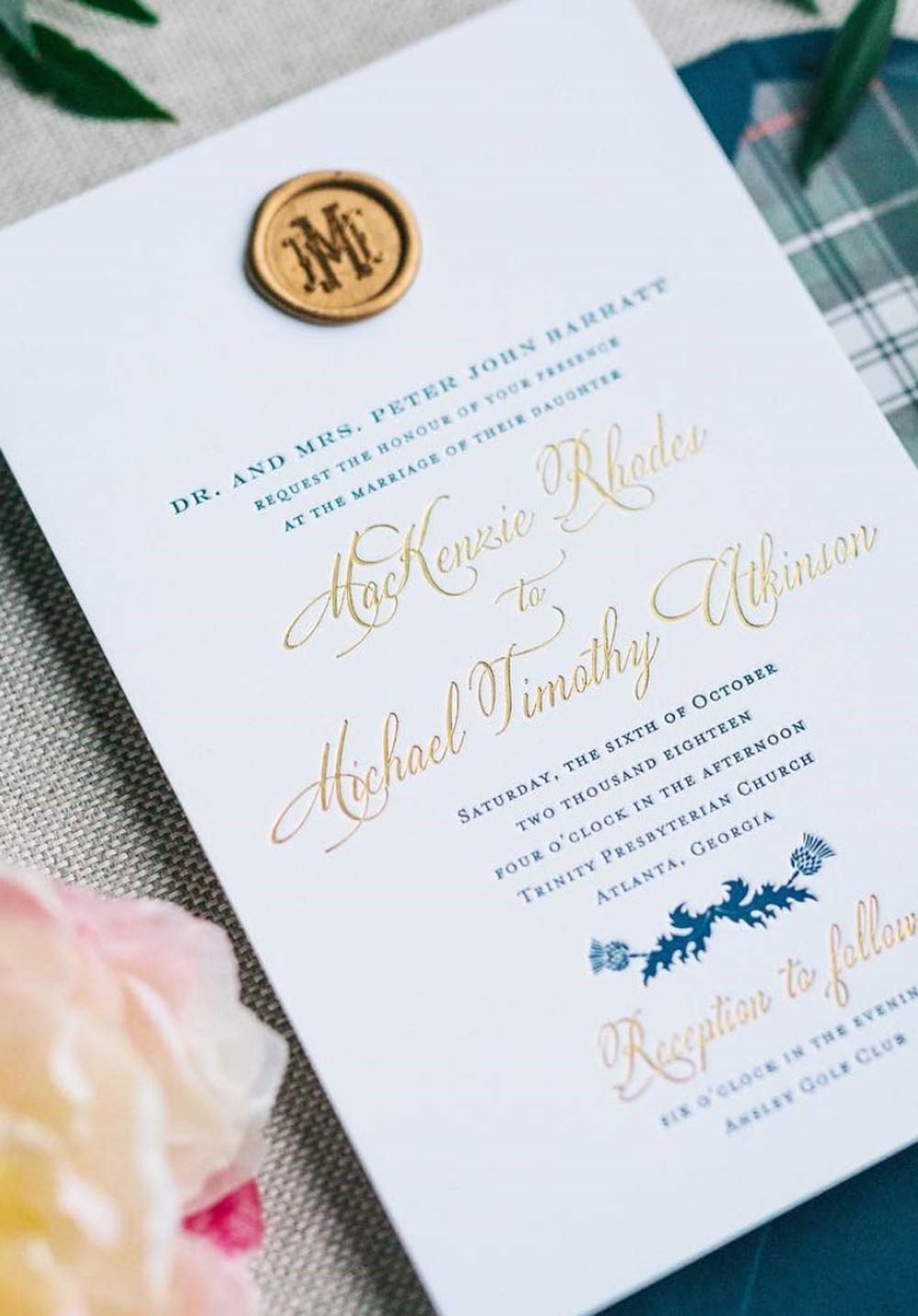 A wax seal is a beautiful way to add a little texture and color to your invitations, save the dates, or even menus! If you decide to add them to your order, we'll add a little dot to your design when we print so you know your seals are perfectly centered when you apply them. If you'd prefer we do the work, then we are happy to apply the wax seals for you! There are a few options to consider, like ordering stickers of wax seals or ordering a stamp to make them yourself and your choice will likely depend on how you want to use the seal. Chat with us for more information and we can answer any questions.