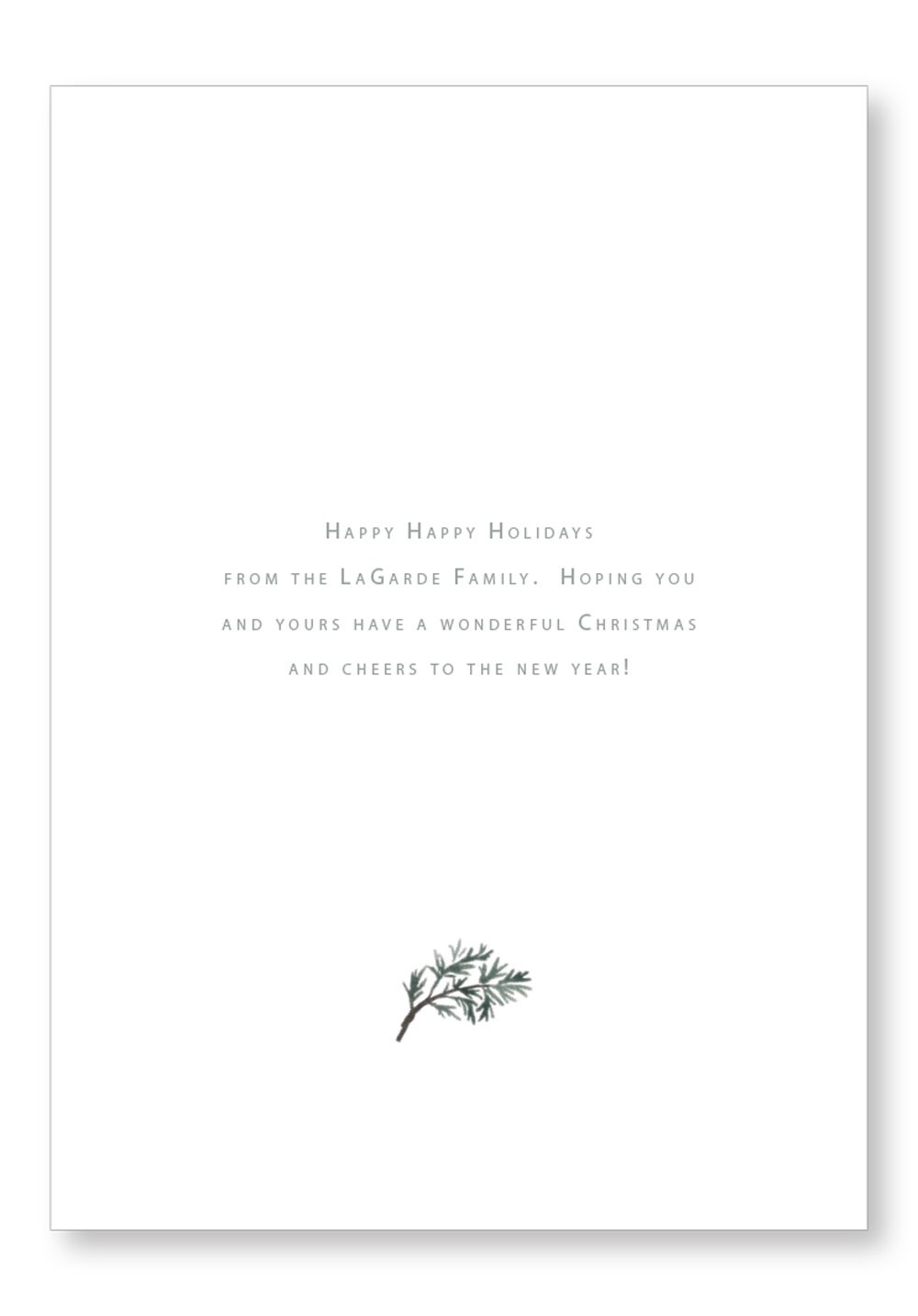 Order your holiday cards today! Beautifully digitally printed on white eggshell textured paper with matching envelopes printed with your friends and family's addresses! Add your family photo, one of the fur babies, or your recent wedding photo!