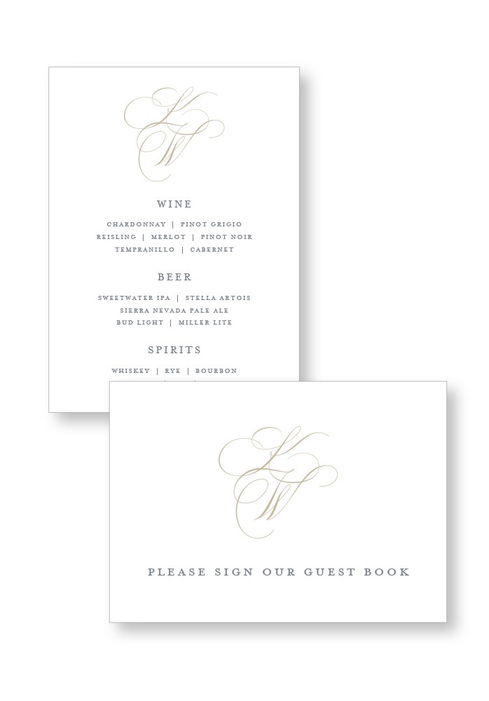 Guest book signs, bar and signature cocktail signs, send-off signs… you name it and we'll design it for you! Our Ceremony & Reception Small Signage is available in a variety of sizes and papers as flat or tented cards.